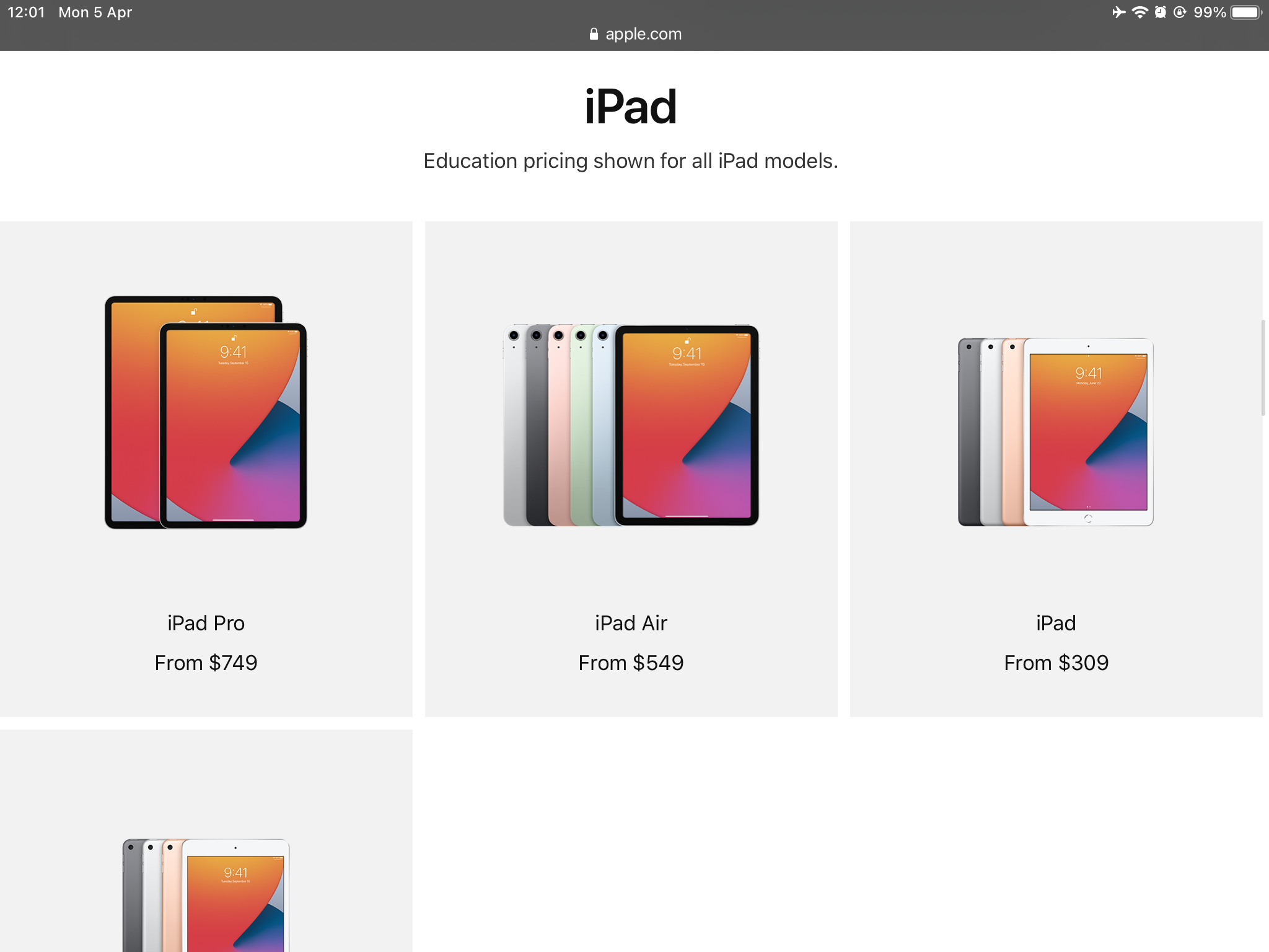 additional info ; https://www.apple.com/us-hed/shop/buy-ipad/ipad-air , or iPad modules : https://www.apple.com/us-hed/shop