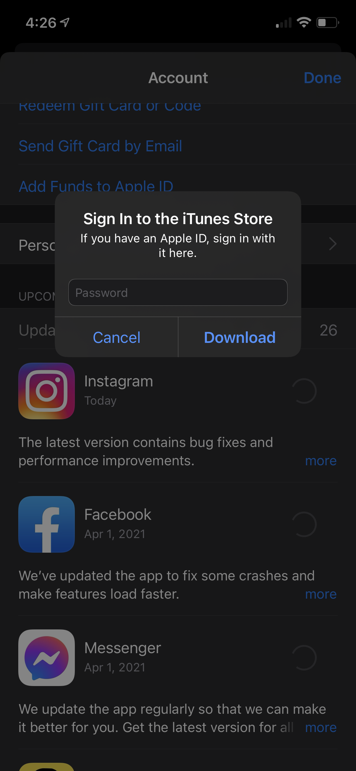 What’s going on? I can’t update any of my apps or download because I have to enter my password or Apple ID but whenever I enter it it’s incorrect. I’m already logged in to my Apple ID.