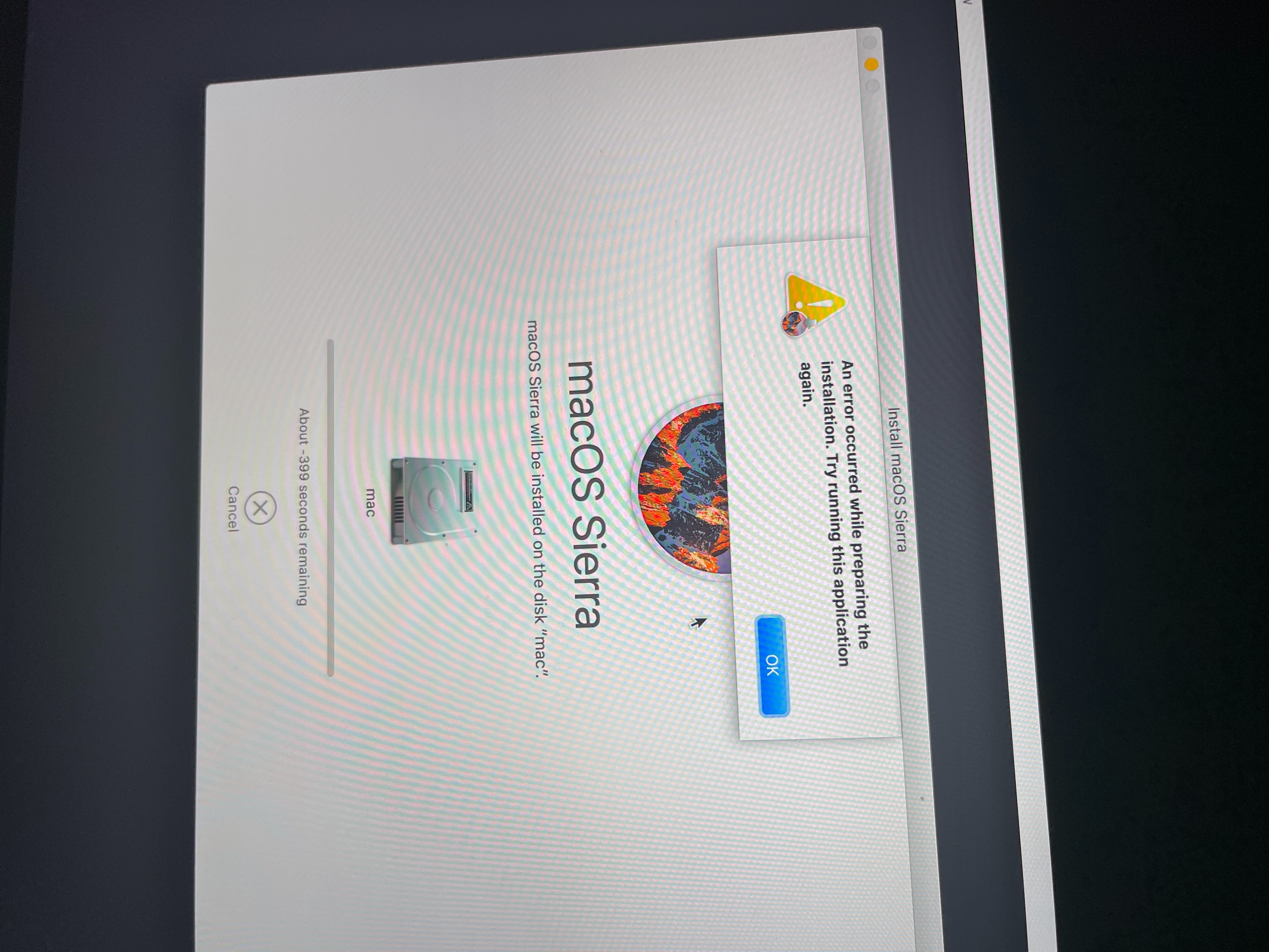I have a MacBook Pro 2017 and whenever I try to install MacOS Sierra (I have deleted my drive) I get an error saying “an error occurred while preparing the installation. Try running this application again. In addition to that, when I try to run first aid in utility my drive is split and there are files from each time I’ve tried to download Sierra.