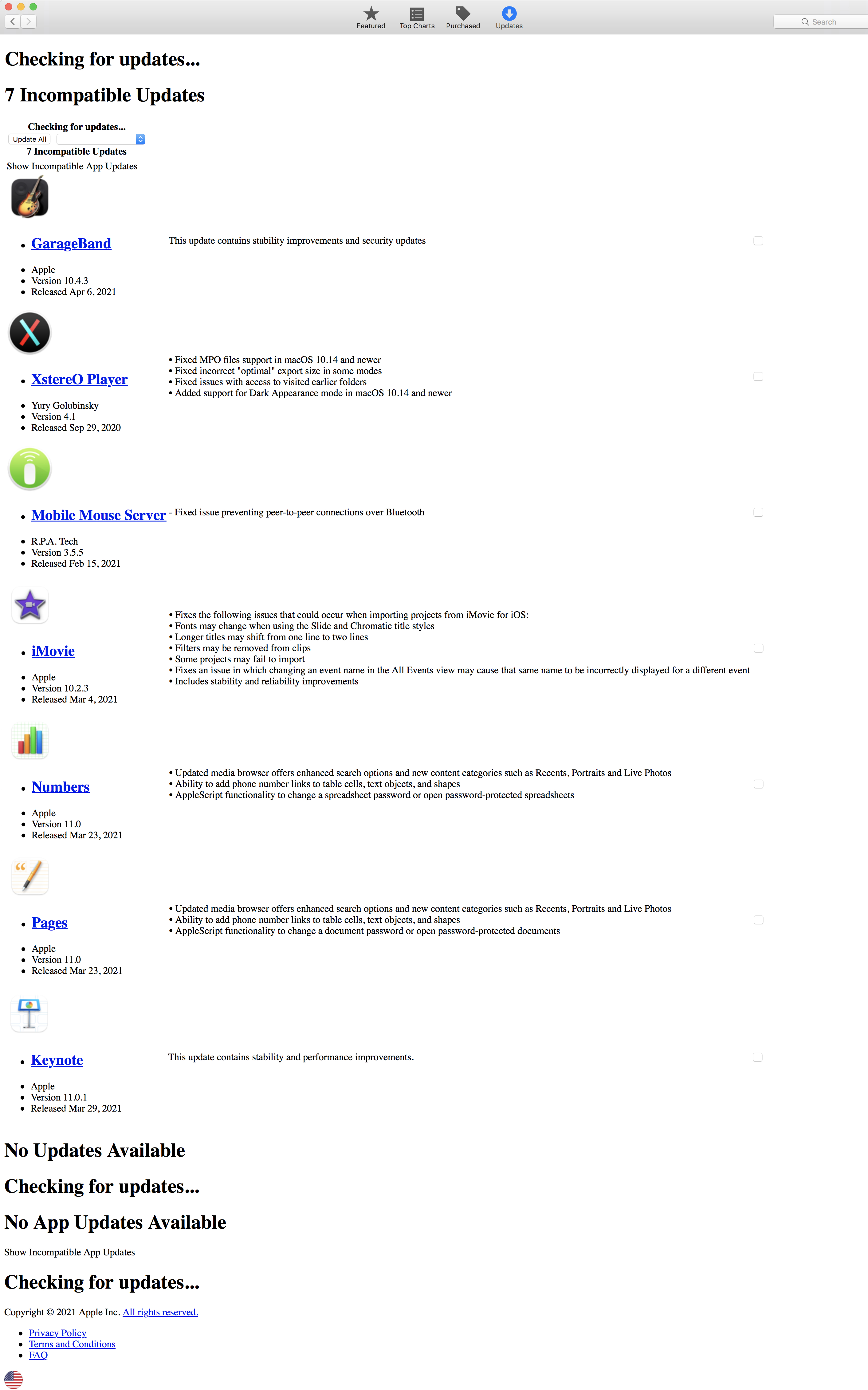 Two days ago the App Store display changed. I was just checking for updates and got a weird display. I'm running OS 10.13.6 on my iMac and on my powerbook and get the same display on each. I've tried rebooting with extensions off and I've tried creating a new account and trying it from there. I get the same results each time. If I've remembered to attach it, you'll see a picture of what I get when I click the updates tab. I've also tried signing off and back on. Whatever it is, it occurred at the same time on both my computers. Help!
