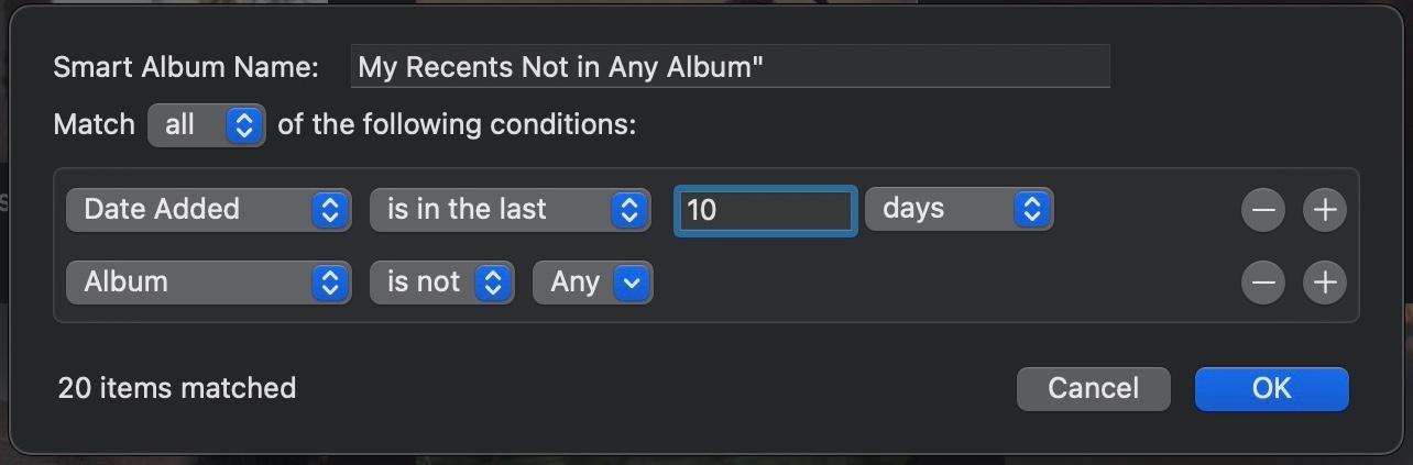If you need an album like "Recents" where you find the most recently imported items, but want to remove the items, that you have already added to an album, create your own smart albums "My Recents not in any Album".