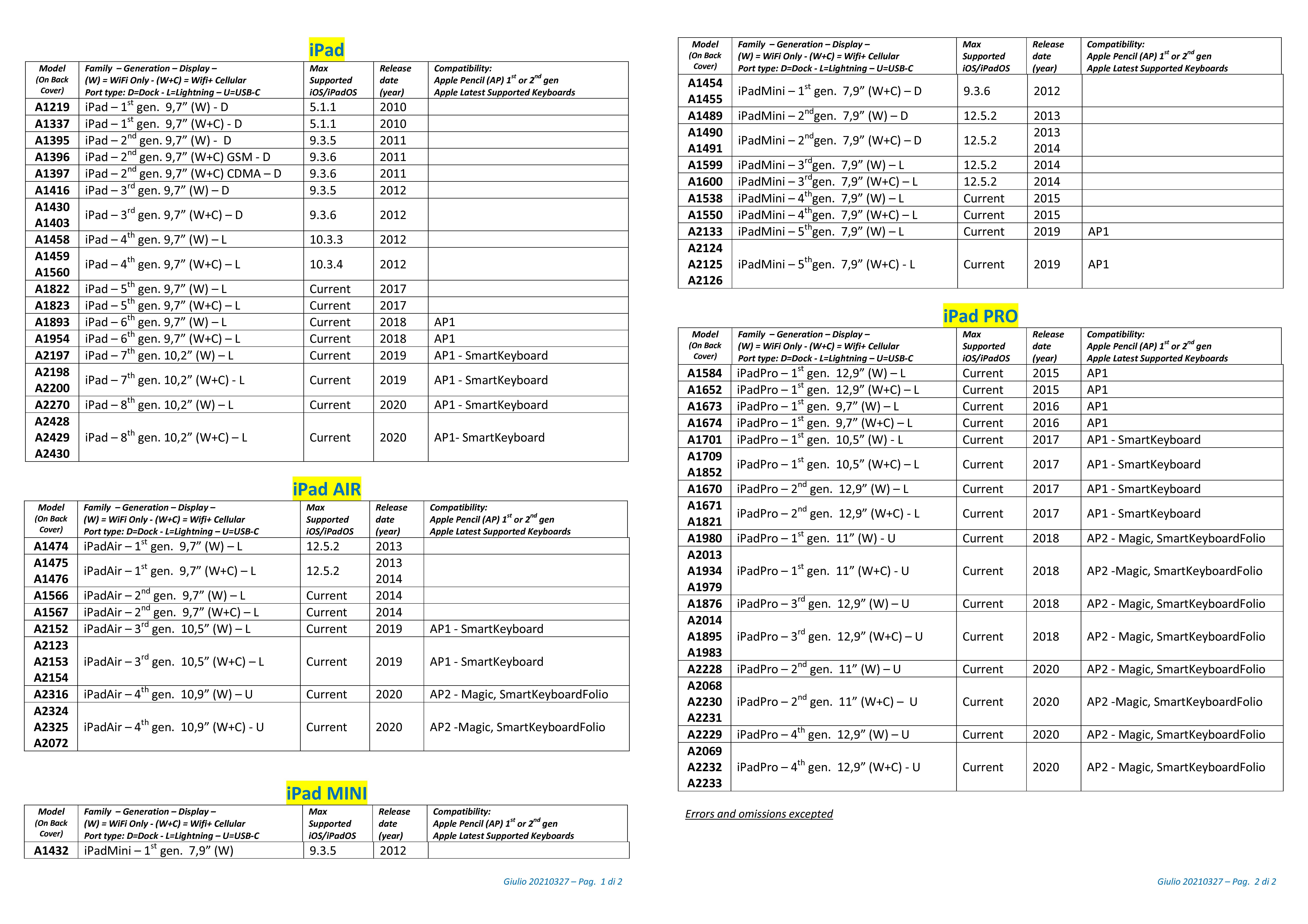 Newer models, not appearing in this list, are all able to be updated to the current version, iPadOS 14.4.2.