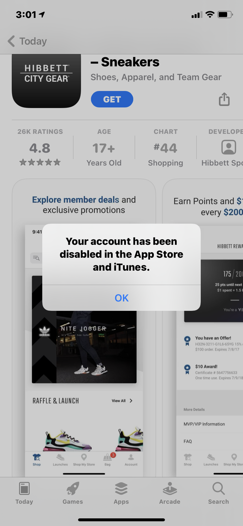 When I go to the App Store and try to download something it says “Your account has been disabled in the App Store and ITunes.” How do I fix that?