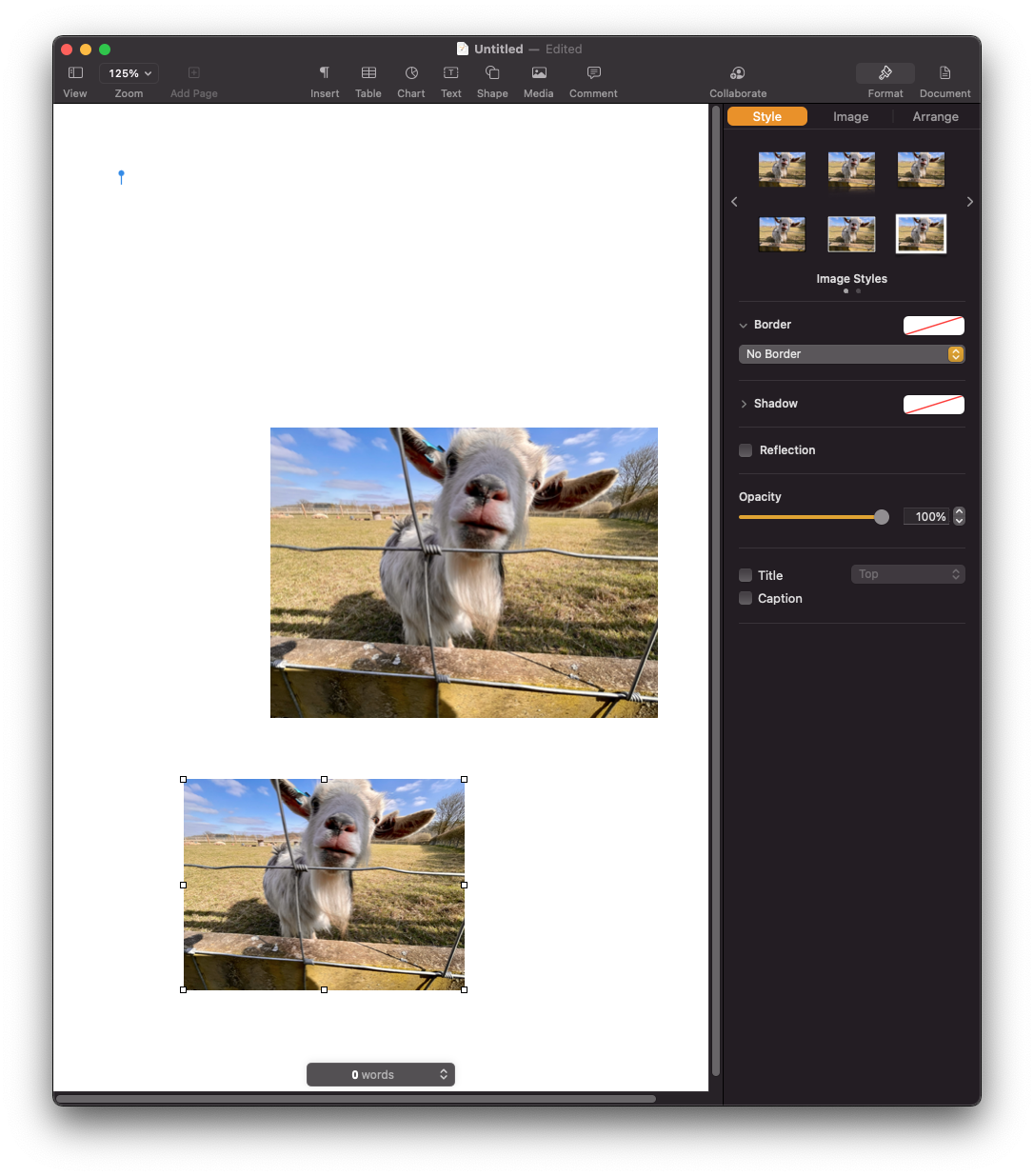 How can I reduce the size of the photo (with no cropping) so when I copy it to a document it shows smaller than the original?
