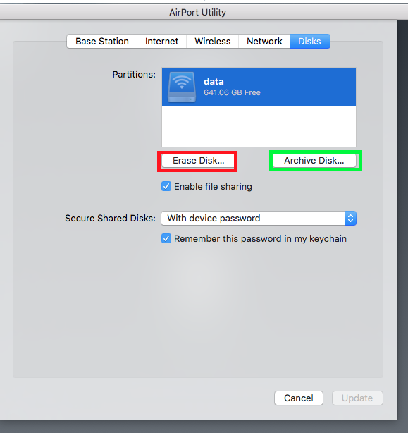 When in the Airport Utility / Time Capsule I can click Edit and get some options,