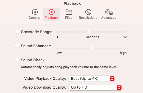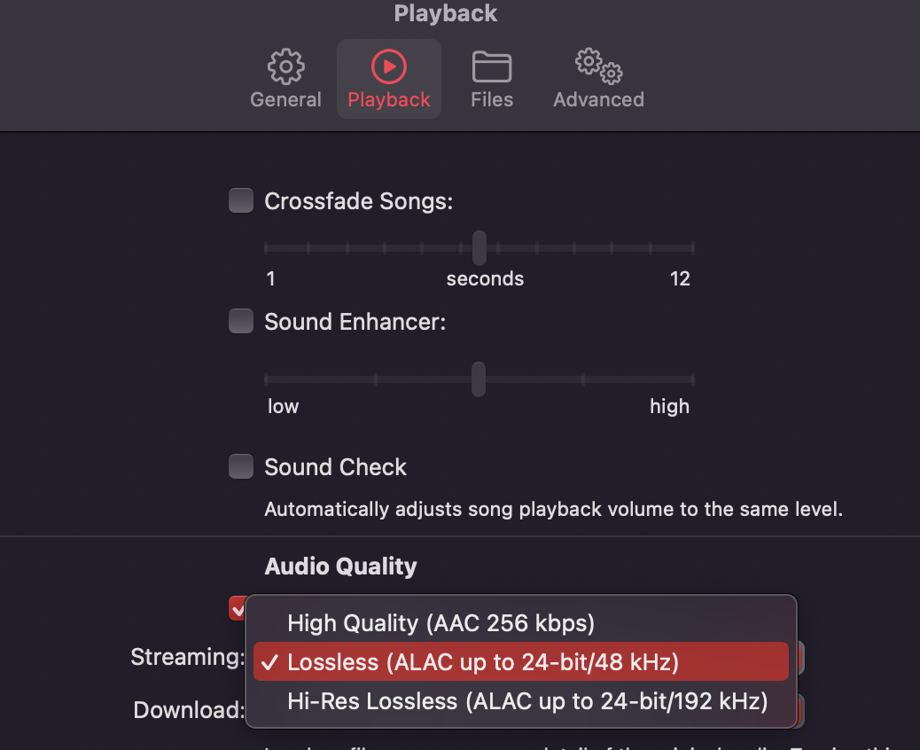 I had been running sound from my external monitor to speakers via AUX out of a port on the monitor. The sound was delivered from the MacBook to the monitor through the HDMI, which comes through a USB-C dongle. I noticed that the volume differences were present during Apple Music, Apple TV, and Netflix (via Safari), so it wasn't an Apple Music setting. I also found it unusual that my MacBook handed over complete control of the audio signal to the monitor, which I am sure is a feature of that functionality, but it made me wonder if that lack of volume control on the MacBook's side contributed to the inconsistency of the audio being delivered over HDMI.