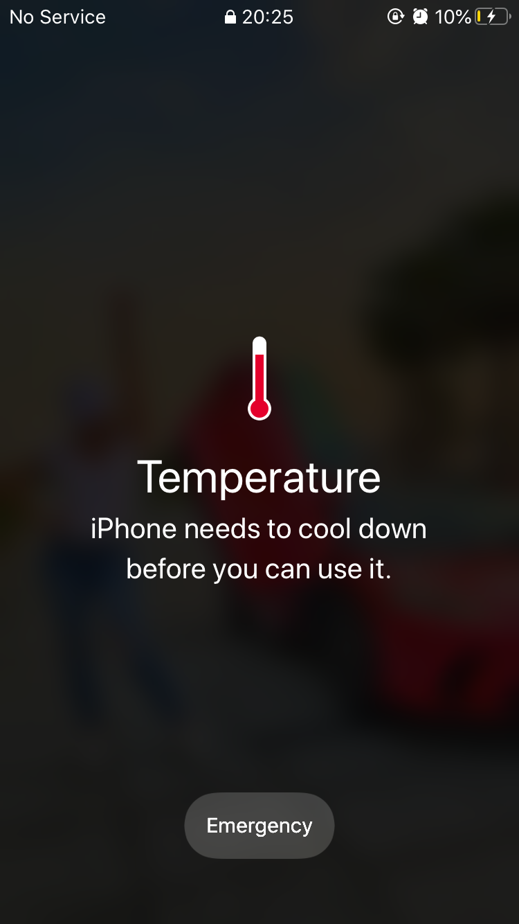 You have some problems. First you have no service. Do you have a sim card from your carrier in your phone? Second, you need to let your phone cool off from being too hot. Third, keep it charging to recharge your battery.