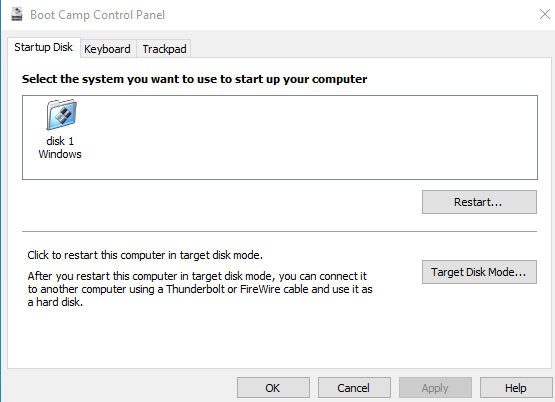 I am trying to install Windows. When I open Boot Camp Control Panel, it shows this: