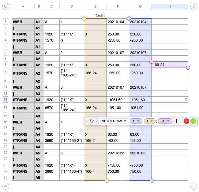I see your values in all of your columns are left justified, including column G which is the important one in this case. The contents in the cells line up on the left side of the cells. Text naturally is left justified. Numeric values are naturally right justified like you see in cell H13 that has your numeric formula that is forcing it to be a numeric cell. This leads me to believe that your entire table is formatted as text. Numeric functions such as SUM, SUMIF, etc. ignore text. Even if the text looks like a number to you and me, it will be ignored.