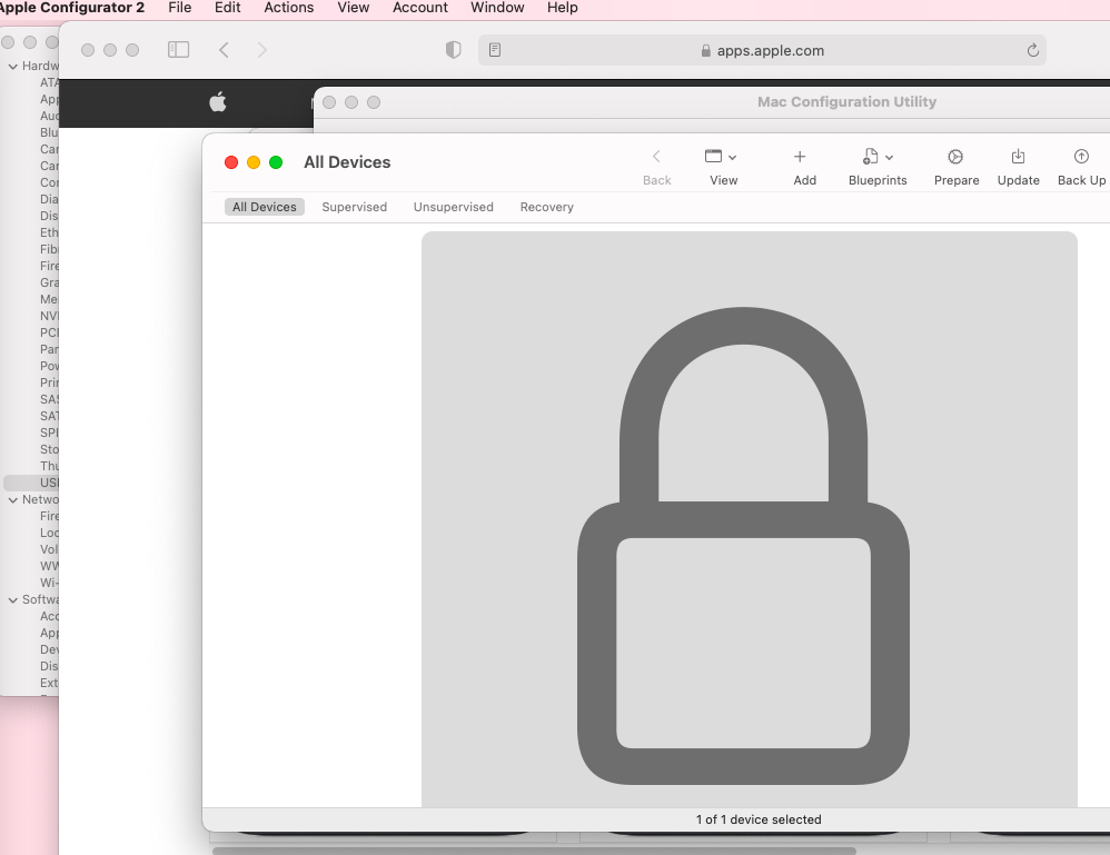 Apple Configurator 2 padlock and not MDM