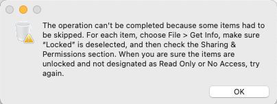 I have checked the file and 'locked' is unckecked and also greyed out. All options are set to 'read & write'