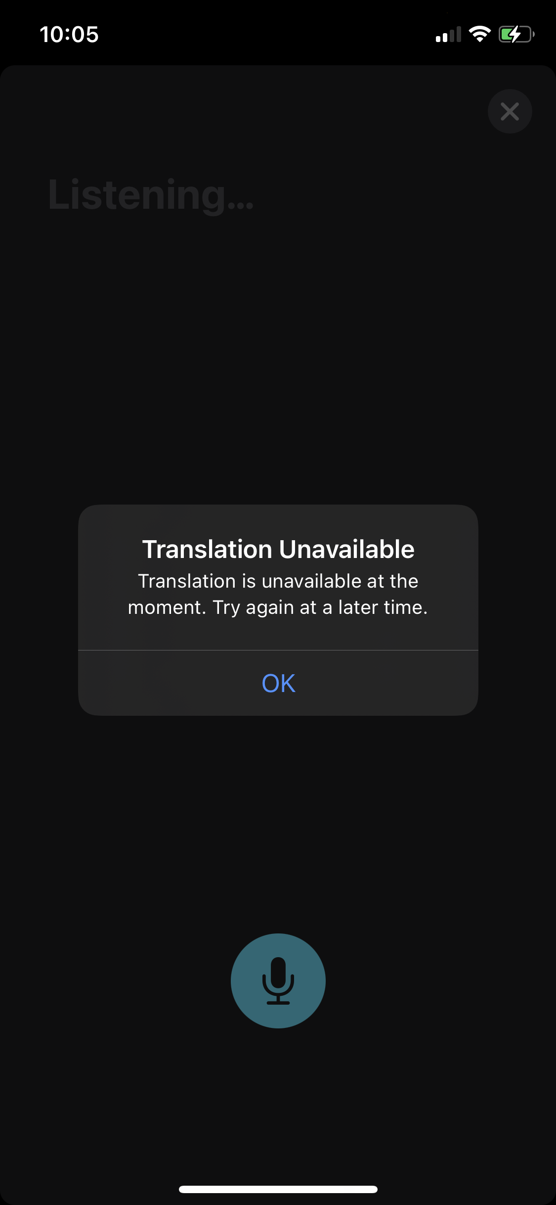 Could anybody explain why my translate app isn’t working? When I type text and then press return nothing happens, and when I try to use voice translation I have an error message that translation is not available.