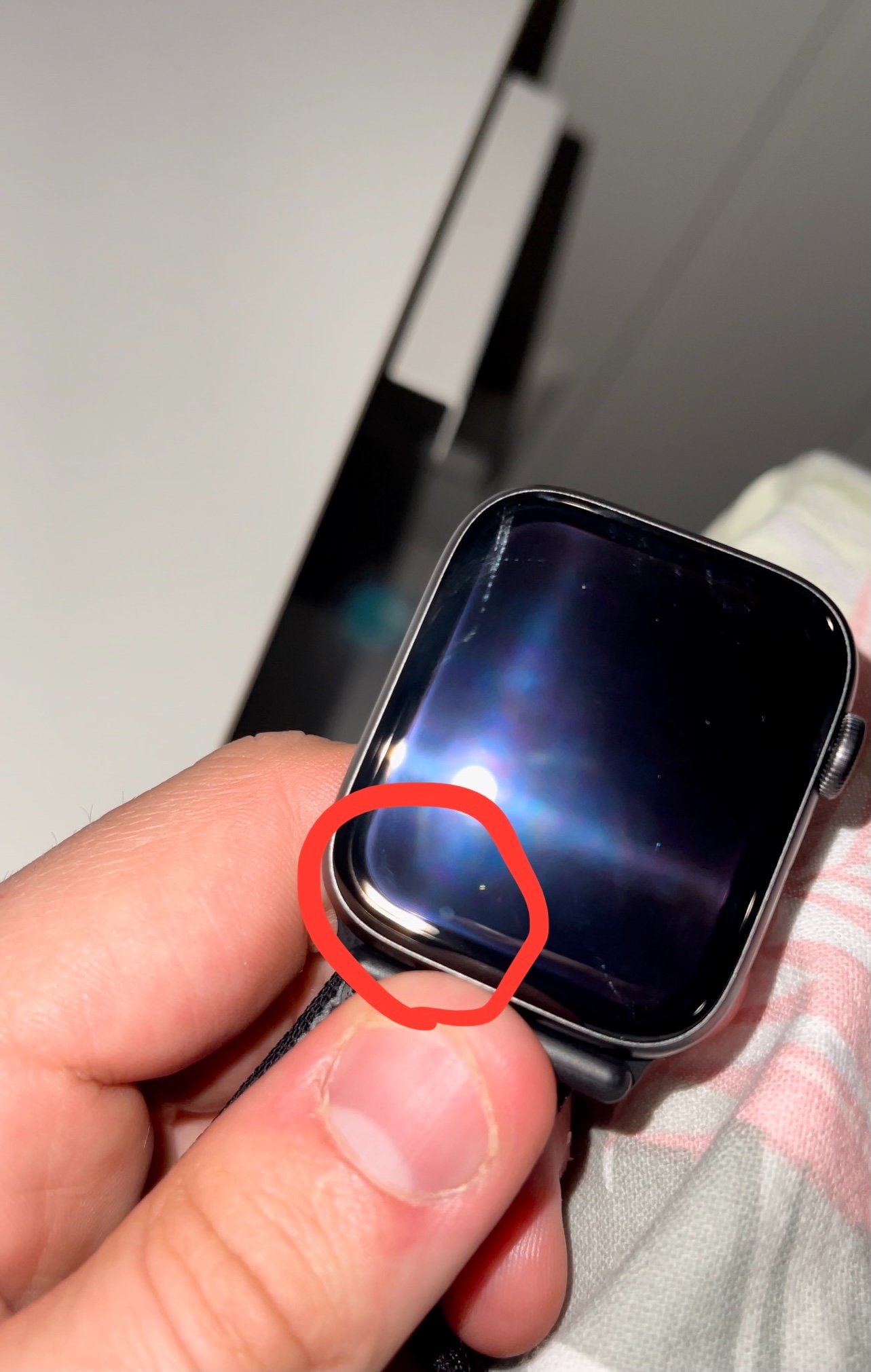 Today i discovered something strange with my Apple Watch. As you can see in the picture below, it looks like its a bubble with air, water or dust under the screen. This is the same whether the screen is on or off.