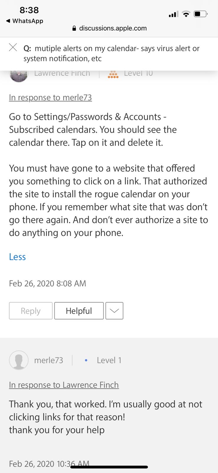 I had an alert come in via calendar advising my phone had a small stem alert, as below and; as per community I followed the “fix” and now it’s gone! But in passwords I have loads of messages advising my password for numerous accounts-mainly online shopping sites has been compromised and; to change them. A lot of these accounts I never use and probably don’t exist.
