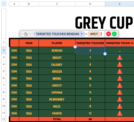 Just trying to take a chart of football stats that divides data by a total to get a percentage and copy and paste it into a 'master' chart while preserving the original sum the percentages were being divided by from their 'home' chart.