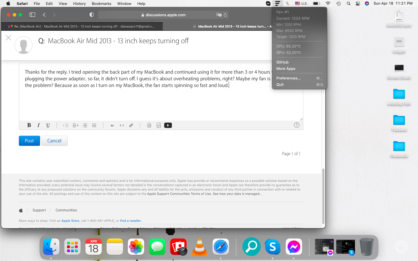 Hi, so I bought a secondhand MacBook air and I haven't used it for almost 6 months since I haven't bought a charger since the lockdown started. So just this week, I was able to bought a new one and when I opened my MacBook air, it keeps on turning off after the fan turns extremely fast and loud but other times, it just suddenly shuts down w/o even opening heavy apps. I've already tried all of the possible solutions like resetting SMC, PRAM, the hardware test, etc.. but still no improvement.