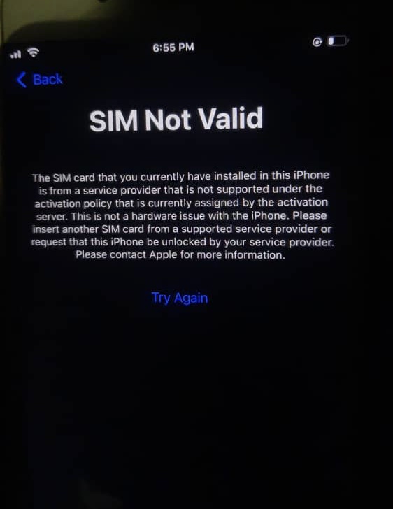 I tried to activate my iPhone 8plus but it keeps given me the below feedback