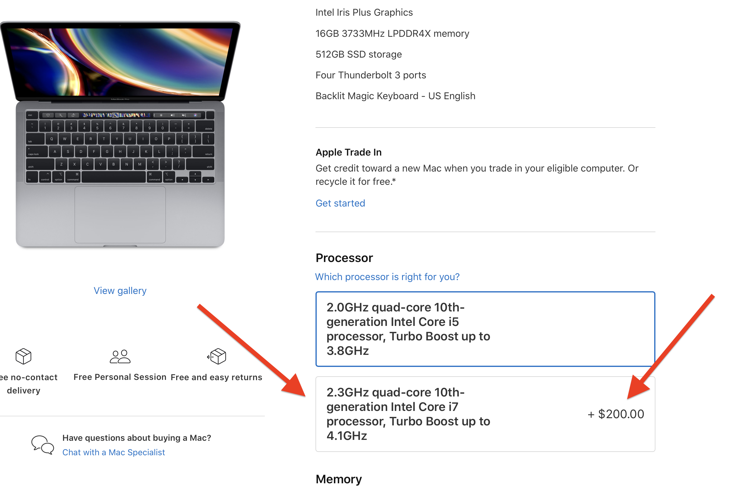 Does anyone know how to upgrade the 12-inch macbook from 2020 from i5 to i7? Because in the specifications it says: "2.0GHz quad‑core 10th‑generation Intel Core i5, Turbo Boost up to 3.8GHz, with 6MB shared L3 cache, Configurable to 2.3GHz quad‑core 10th‑generation Intel Core i7, Turbo Boost up to 4.1GHz, with 8MB shared L3 cache."