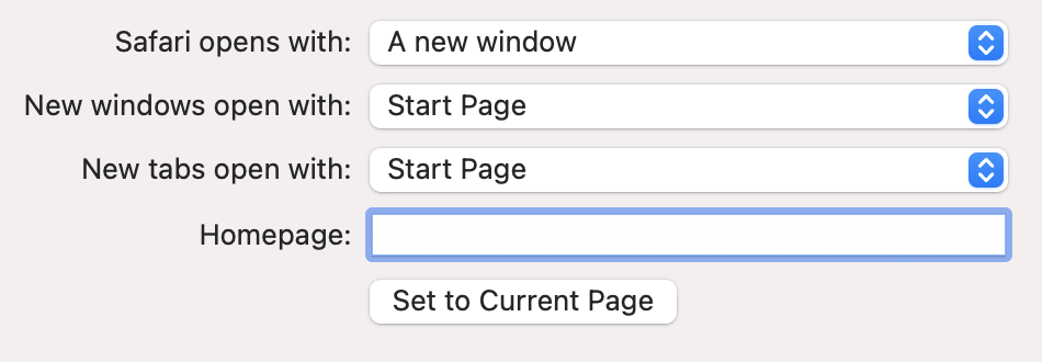 *I want to know, what URL do I type into the Homepage box, see screenshot, so that when I click the home icon in the safari browser bar, I get the Apple Start Page.