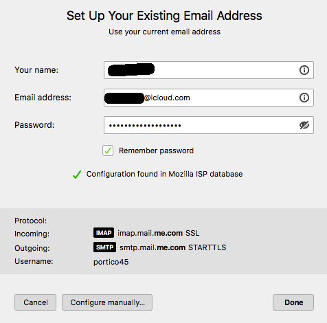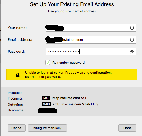 but when I try same for an iCloud secondary email I get as far as the configuration then this: