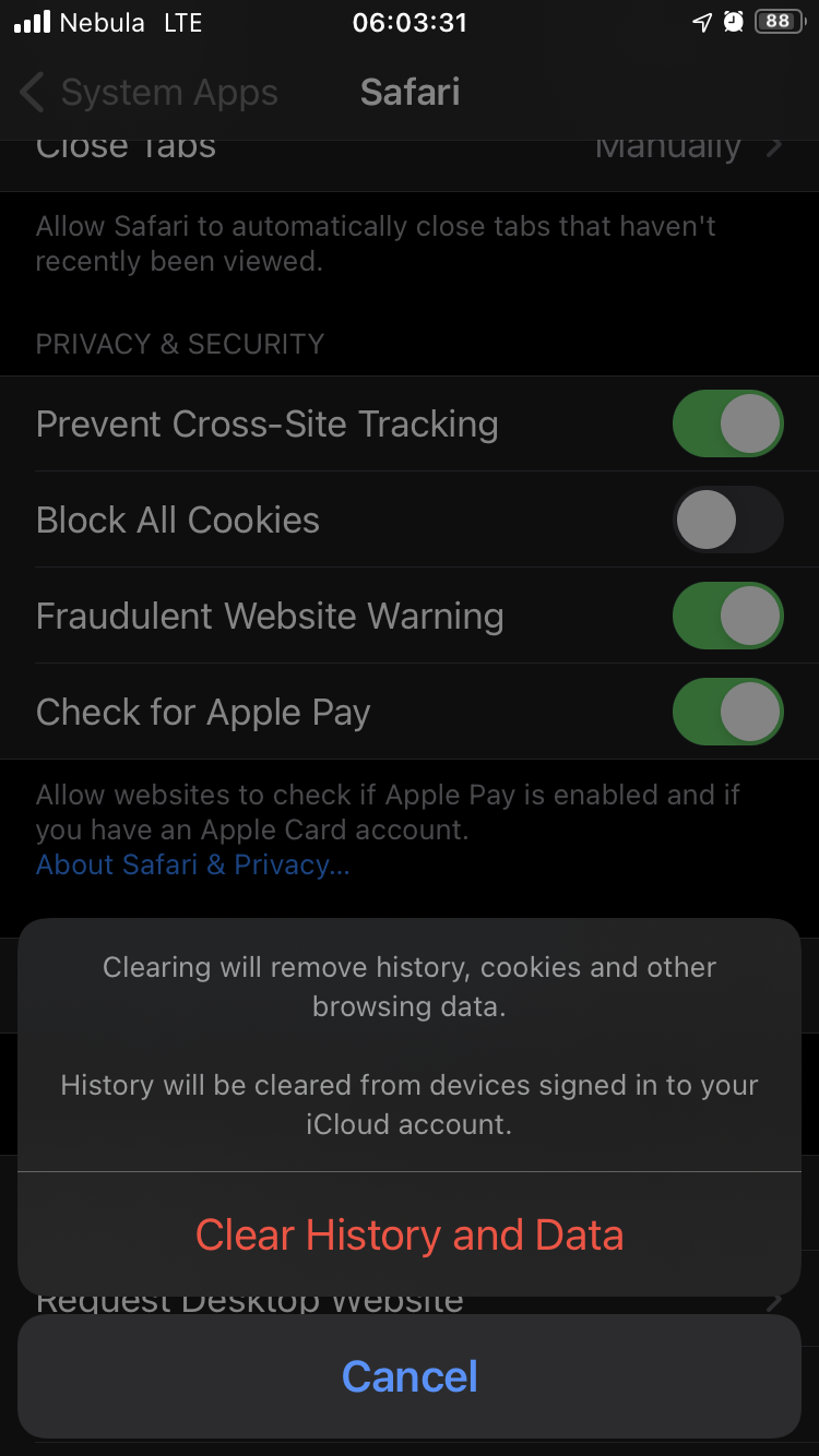 Safari - Clear the history and cookies on your iPhone, iPad, or iPod touch.