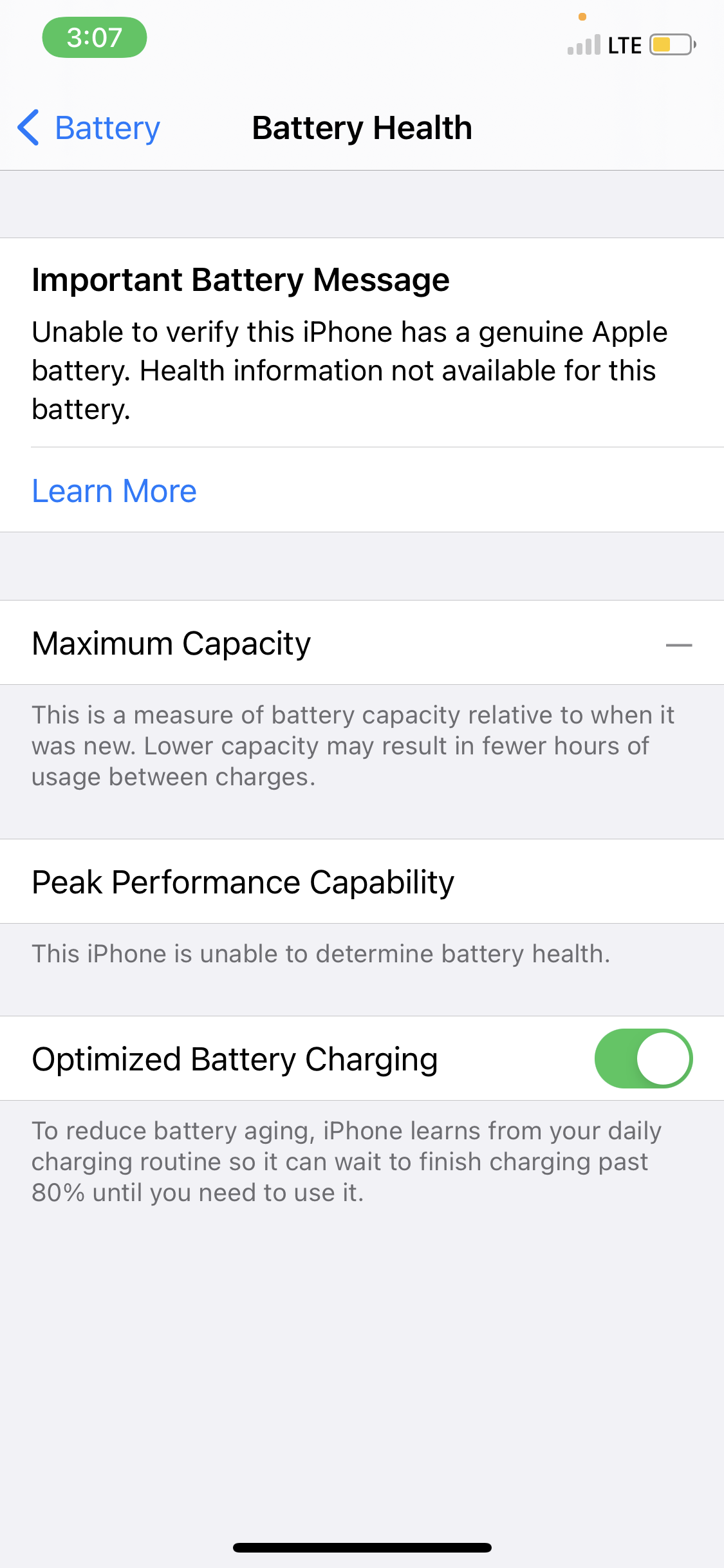 What does this iPhone battery message mean?
