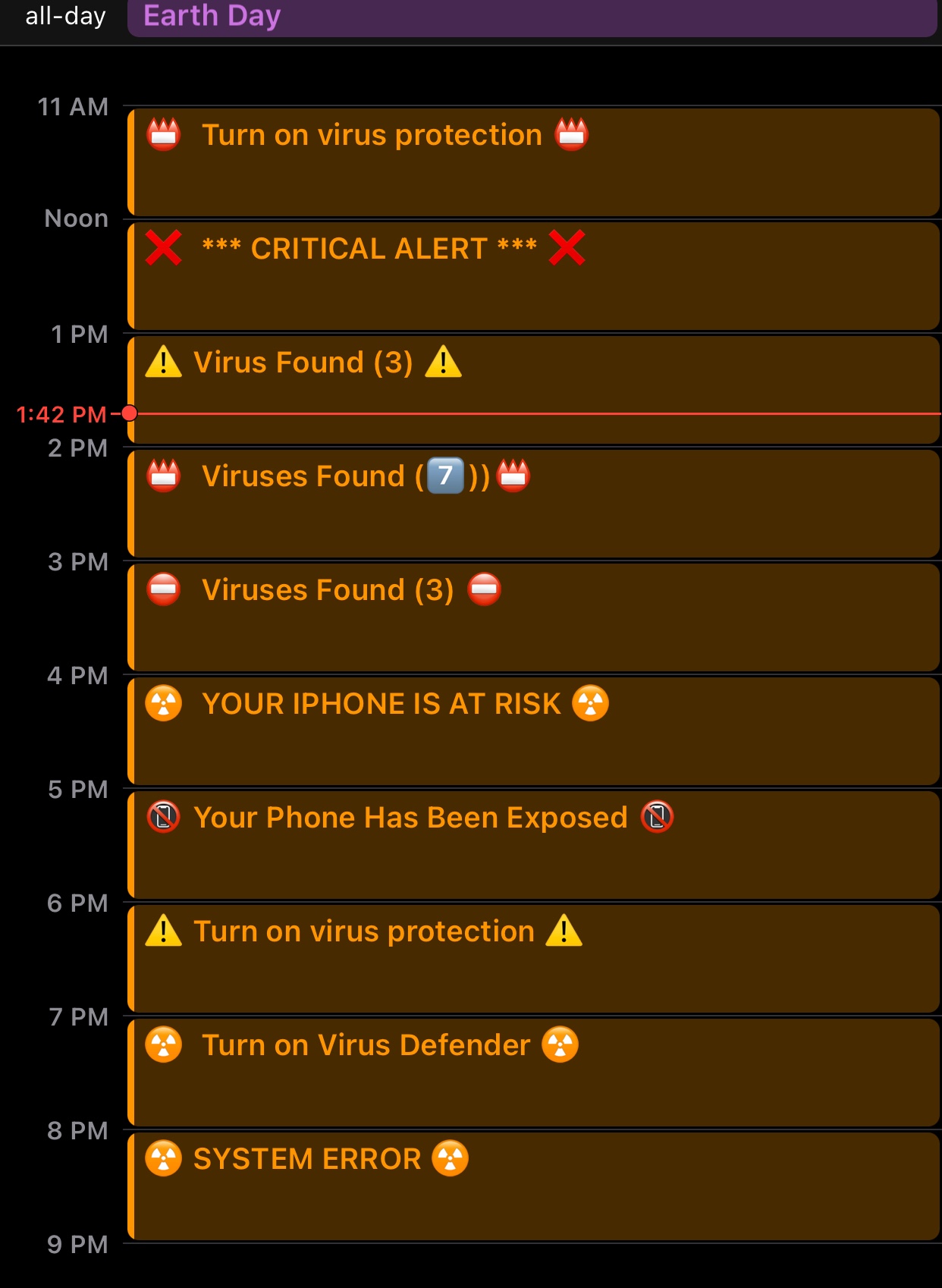 You have subscribed to scam calendar account. Go to Settings > Calendar > Accounts, then check each listed configuration and remove one that is associated with those scam events and account.