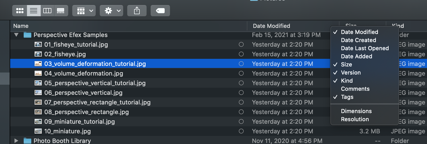 Mac Finder Status Icons in List View