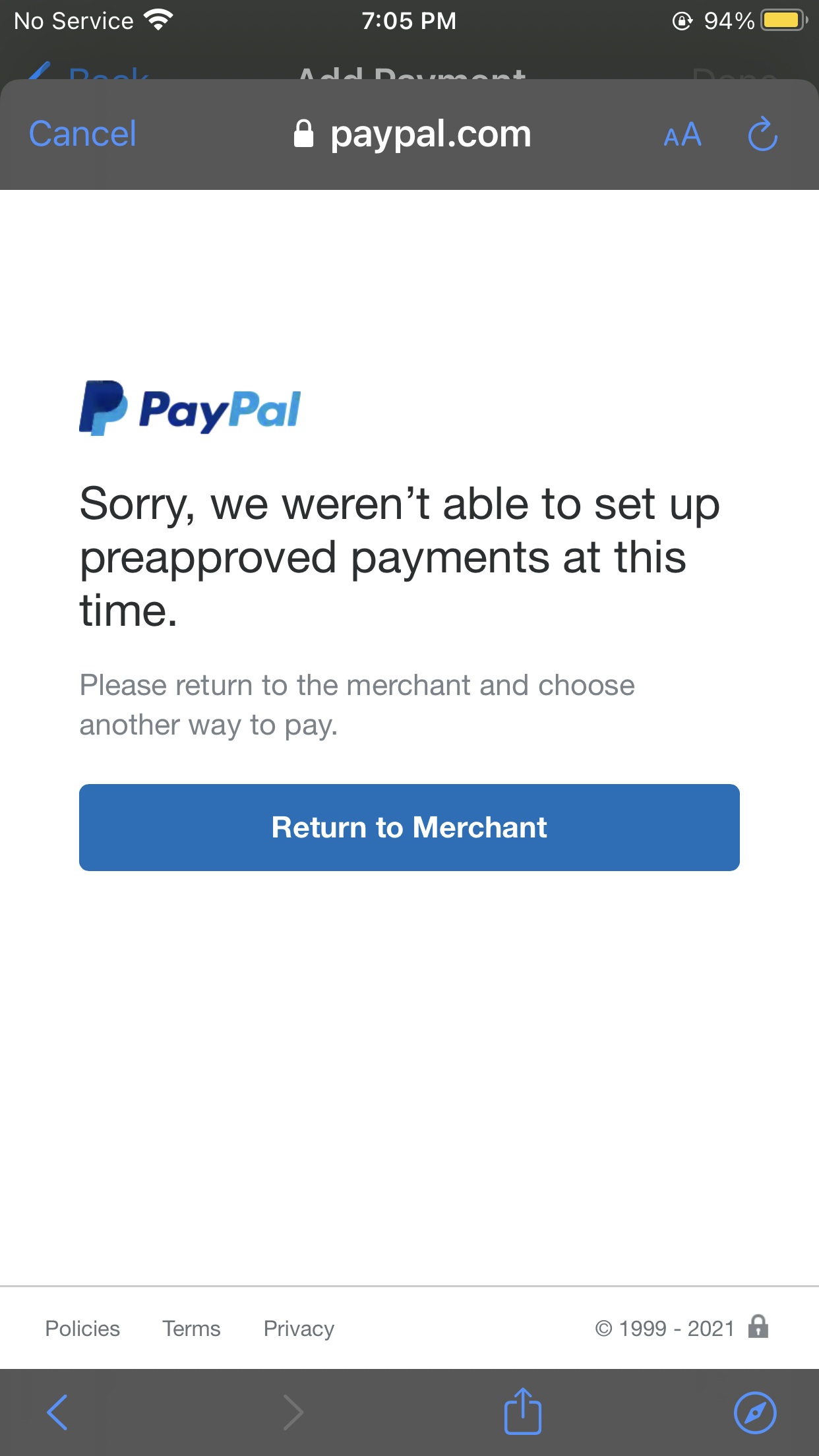 When I tried connecting my PayPal to my Apple ID, it said this. Why does it say this when I used to connect my PayPal to Apple ID and it never showed this until now.