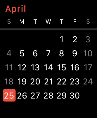 Answer: screen shot calendar on iPhone crop image and view on Apple Watch