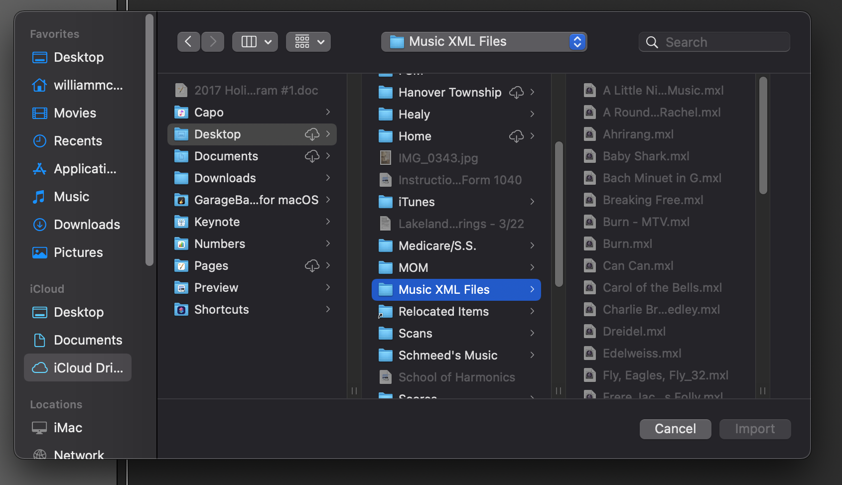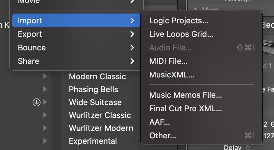 How do I import/open .mxl files in Logic Pro? I've gone to the File menu, selected Import as the Apple manual says, but there is no command for selecting XML or .mxl. Does the track selection matter on the opening page?