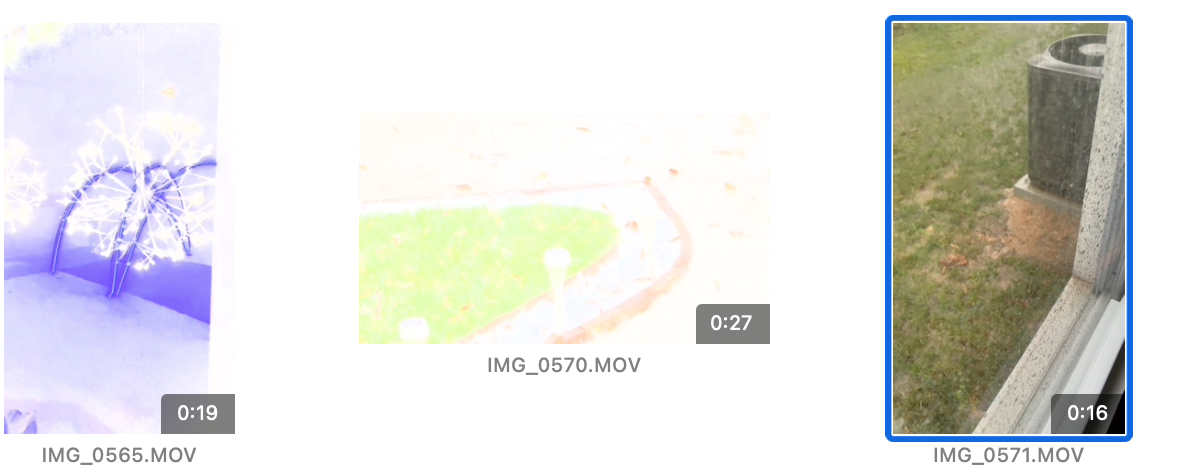 Additionally, some of the videos in Photos also appear in the image roll like they are a film negative (see attached image - two as negatives, followed by one that is 'normal').
