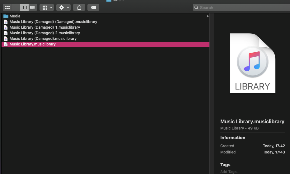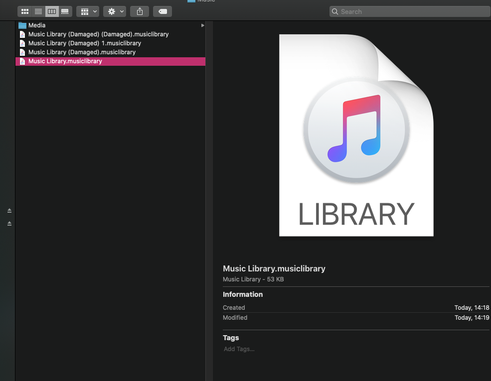 Alle files gone from Apple Music! Message: The library “Music Library (Damaged).musiclibrary” does not appear to be a valid music library. WHAT???