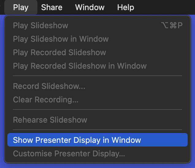 To show Presenter Notes when in Playing the presentation in "Play Slideshow in a Window",