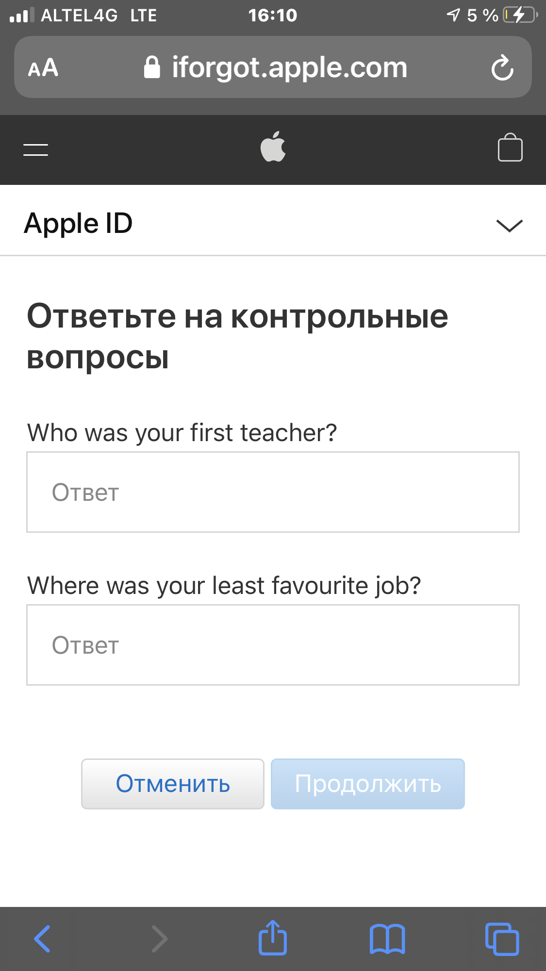 Если вам сказали, что информации недостаточно для их сброса, обратитесь в службу поддержки Apple ID.