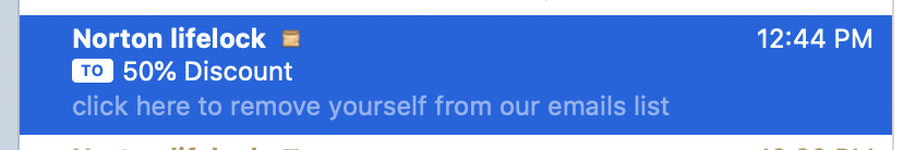 The orange box after 'lifelock', what is it, what does it do? When I click on it the box moves a bit, but still remains there and the email stays there also.
