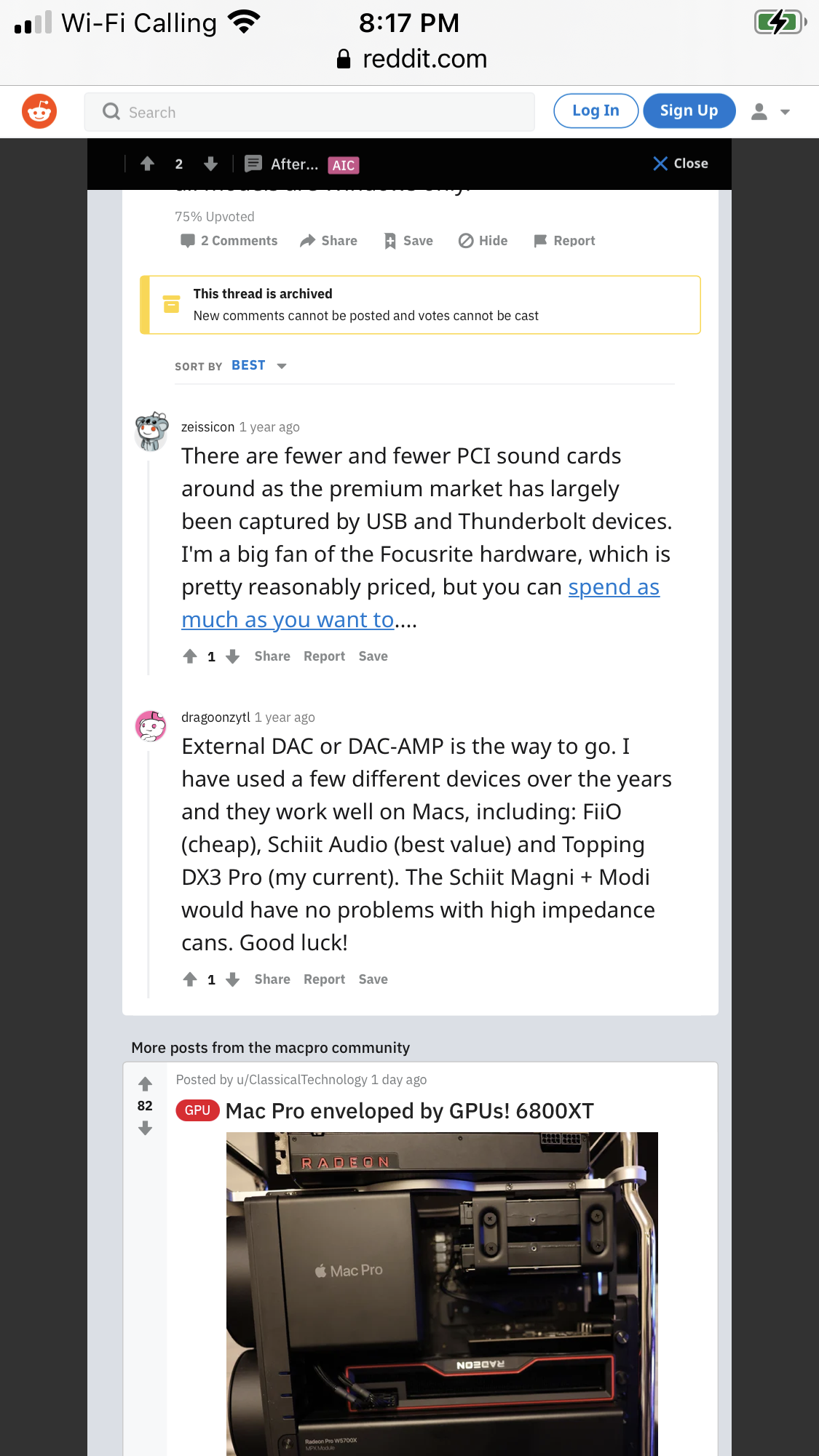 "Where can I learn about sound cards for MacPro 2019. Dear Forum, I am wondering EVERYTHING, such as when it is advisable to have one, what do they do, what are the parameters for making a decision, and on & on. Any tips, thanks !! BTW, so far using and RCA to USB-C has NOT been satisfactoryfor running a tuner/amplifier. I just want to blast my computer-stored music out my speakers attached to the tuner/amplifier via the computer controls."