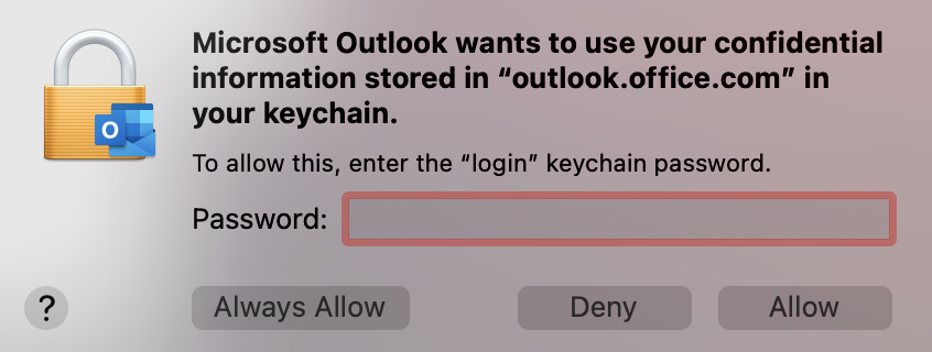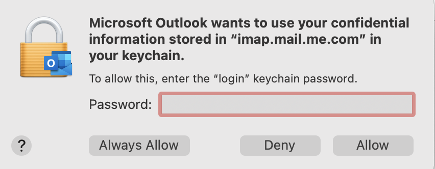 The prompt is telling you the item sought (imap.mail.me.com, outlook.office.com) and the keychain (login).