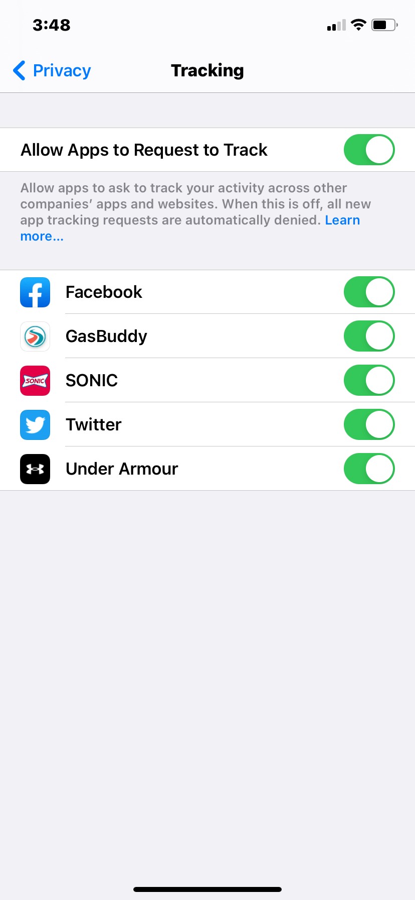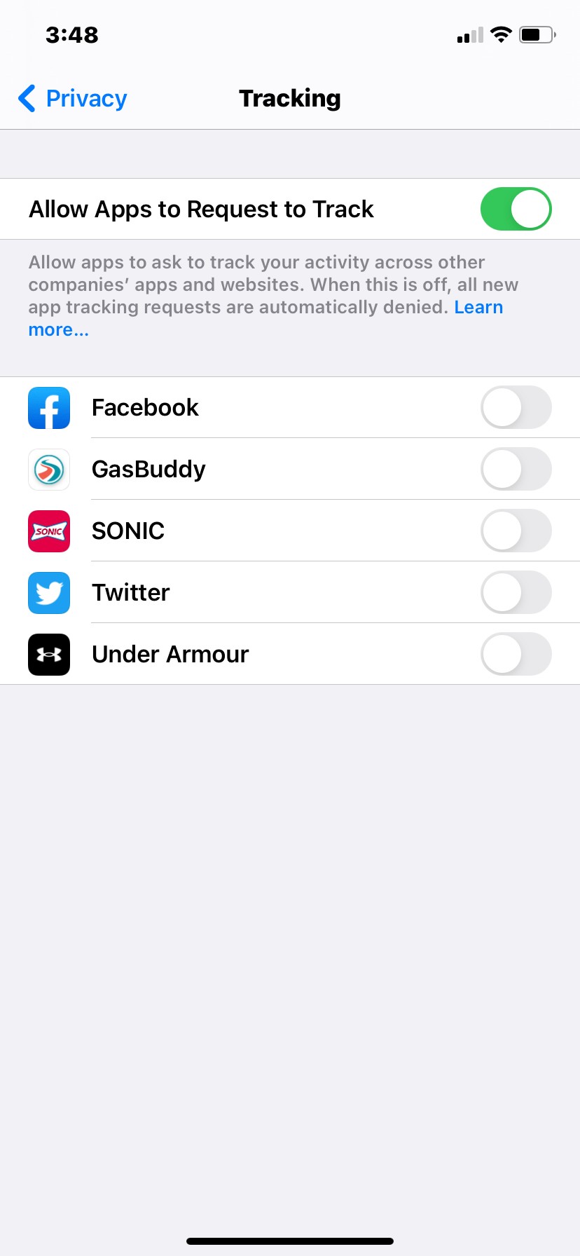If I toggle Allow Apps to Request to Track OFF it will not allow any app to ask permission and block them from tracking, Correct? Like in the screenshot?