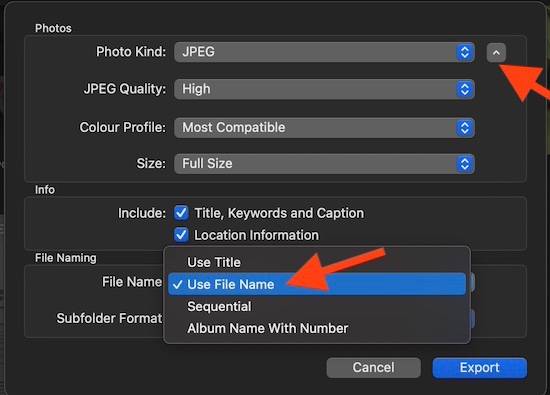 I am trying to send photos to a site called Trekearth but Trekearth keeps putting up a notice saying no more than 15 characters allowed.Upon inspecting the photos I find that my MacBook Air has added a huge string of characters to the photos and I can not find out how to remove them.The added characters appear pale grey.The Windows system does not do this but I have to use my Windows machine to overcome this.