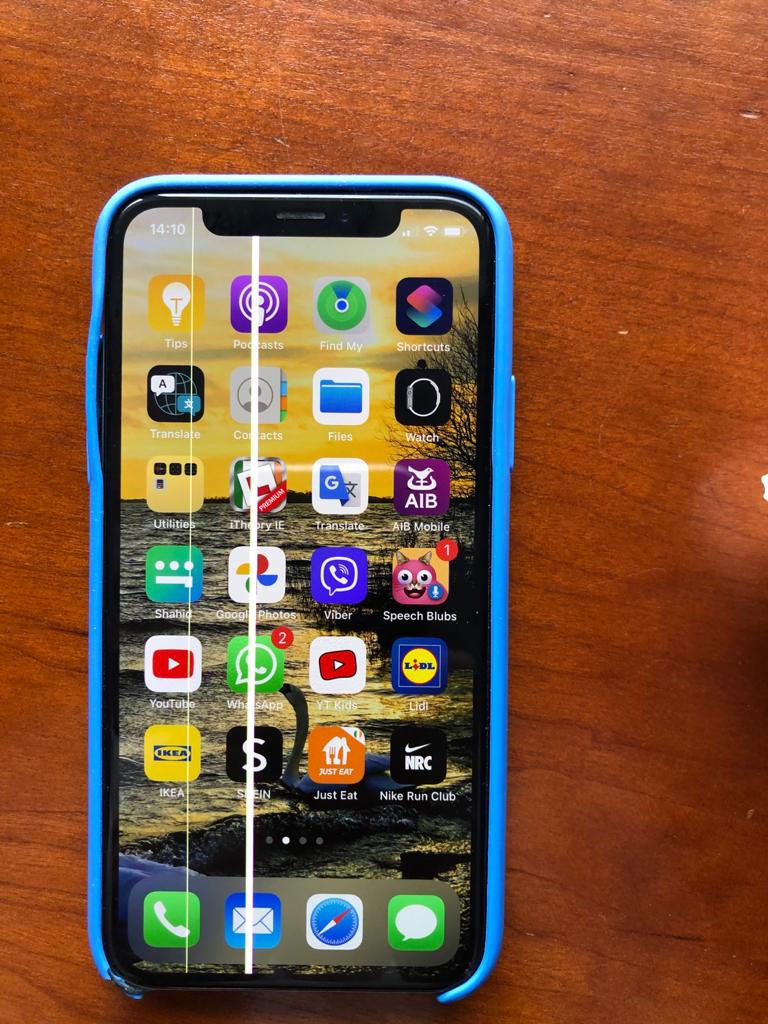 my phone works perfectly fine (two photos of my iPhone attached ) but it has two fine green lines in the screen.