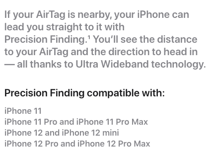 Am I not able to access the "Directions" mode for my airtag - where it shows in feet - how far you are from the tagged devise? Counting down "15 feet, 10 feet, 5 feet" etc as you get closer because I have an iPhone X - or is there another reason - such as user error? I get the map and the location dot, but not the distance away detail I've seen on video. Thanks much!