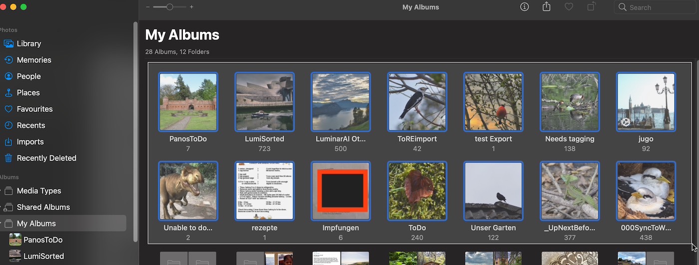 Thanks. Unfortunately I am trying to delete empty folders not albums and I am not able to select them using the normal shift command that you would use to select a series of items like e mails to delete. I am only able to manipulate the folders one at a time. Either delete 1 at a time or move into new folder1 at a time. I am running Catalina