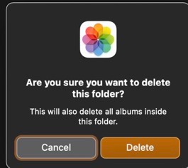 Thanks. Unfortunately I am trying to delete empty folders not albums and I am not able to select them using the normal shift command that you would use to select a series of items like e mails to delete. I am only able to manipulate the folders one at a time. Either delete 1 at a time or move into new folder1 at a time. I am running Catalina