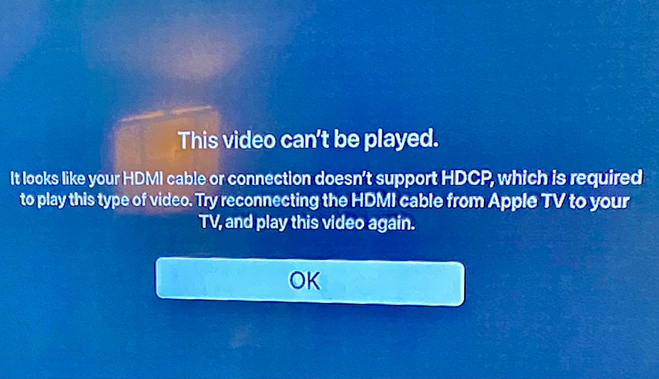 Seeing the HDCP error, I tried unplugging the HDMI cable and