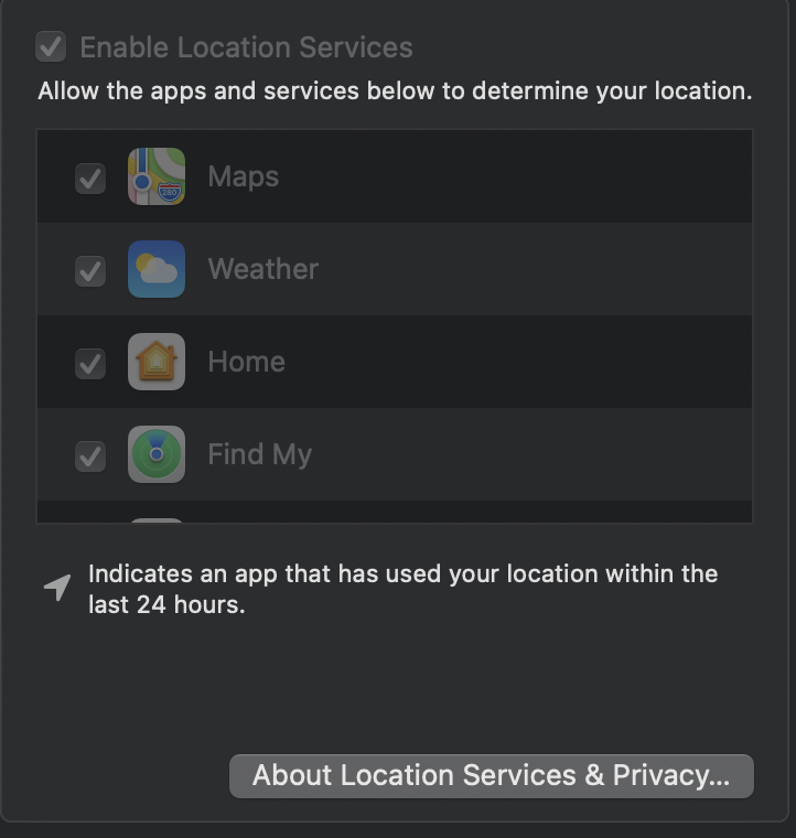 My Macbook Air, M1 Location is already enabled for recommended apps. But still can't locate it.