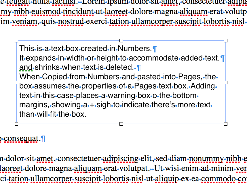 Adding text required dragging a handle down to expand the box before adding the text above, and expanding the box manually again to reveal the text that had caused the warning box seen above.