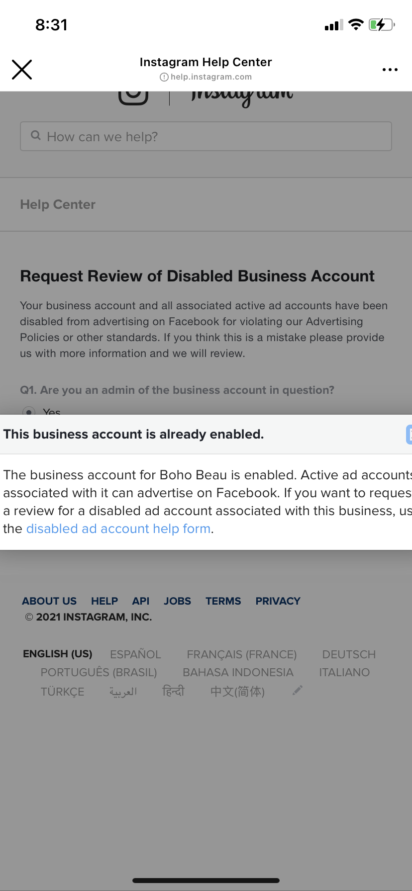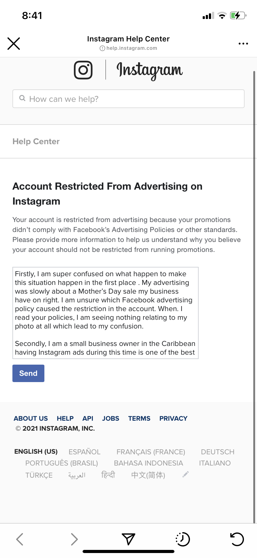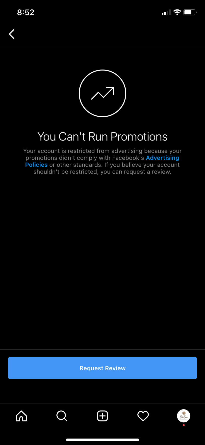 I have been trying my upmost to report a problem with my business account profile. I had tried running an advertising promotion from Sunday for Mother’s Day and saw that my advertising account was disable due to Facebook advertising policies which prompt me to read the policies which none had apply to the photo which I placed on the page. I then proceeded to follow the steps set out for a review which wasn’t successful. I then went on to reporting a problem and that wasn’t successful either. I proceeded to google it and saw stuff talking restricted Facebook and not Instagram. I also saw that the iOS 14 for iPhone may have played apart in this due to same of the comments that I have read but I am not getting the answers I need to have my business advertising up and running.