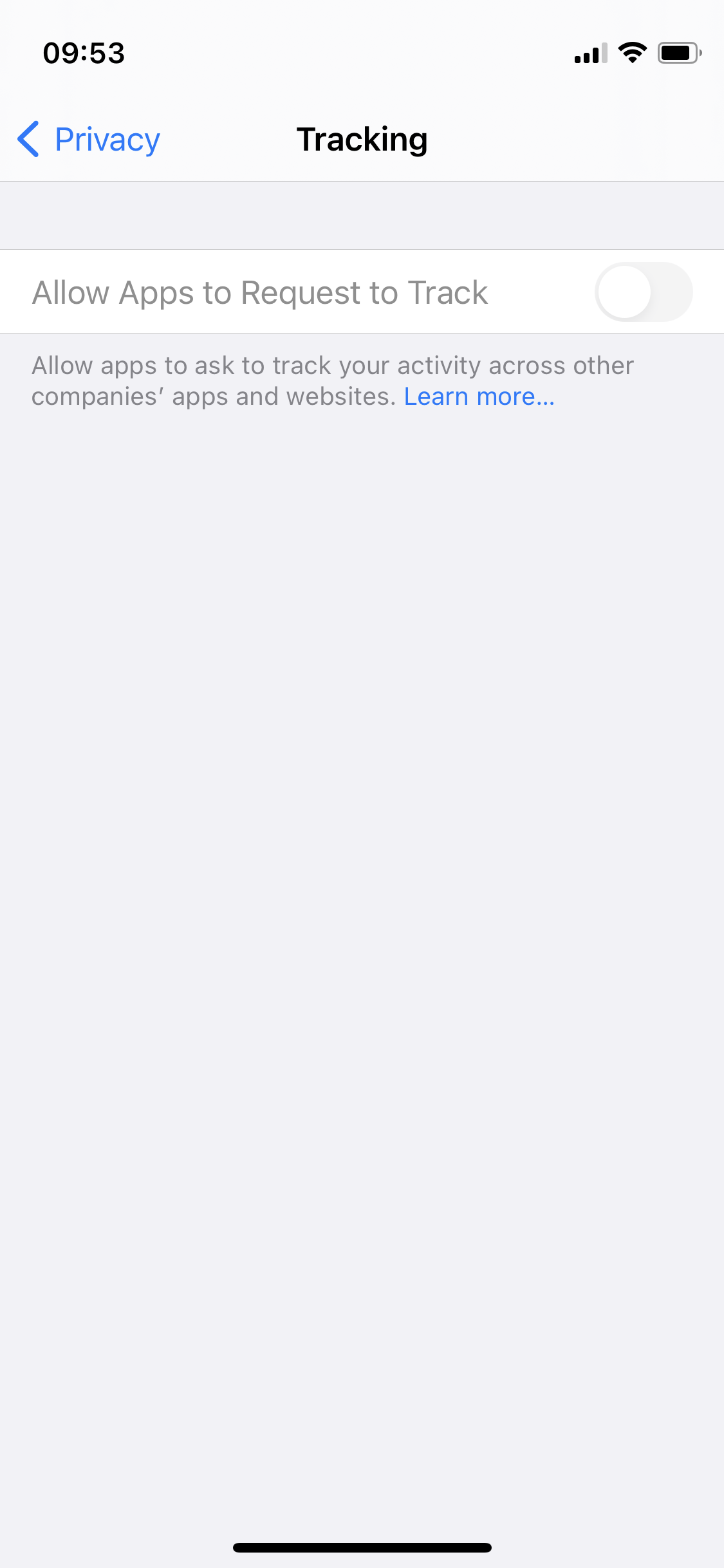 In some circumstances, the “Allow Apps to Request to Track” setting is disabled, including: