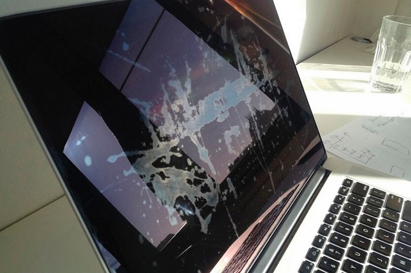The main problem and stupor at the moment is the identification of a new potential problem - the remaining anti-glare coating from the screen (Retina). And I would like to ask - how do you deal with this, if you have a similar situation? What should I do so that this situation does not arise in principle? I live in Russia and to give 100,000 rubles for a MacBook in principle is quite problematic, and to fix it for 30,000 rubles is even more sad.
